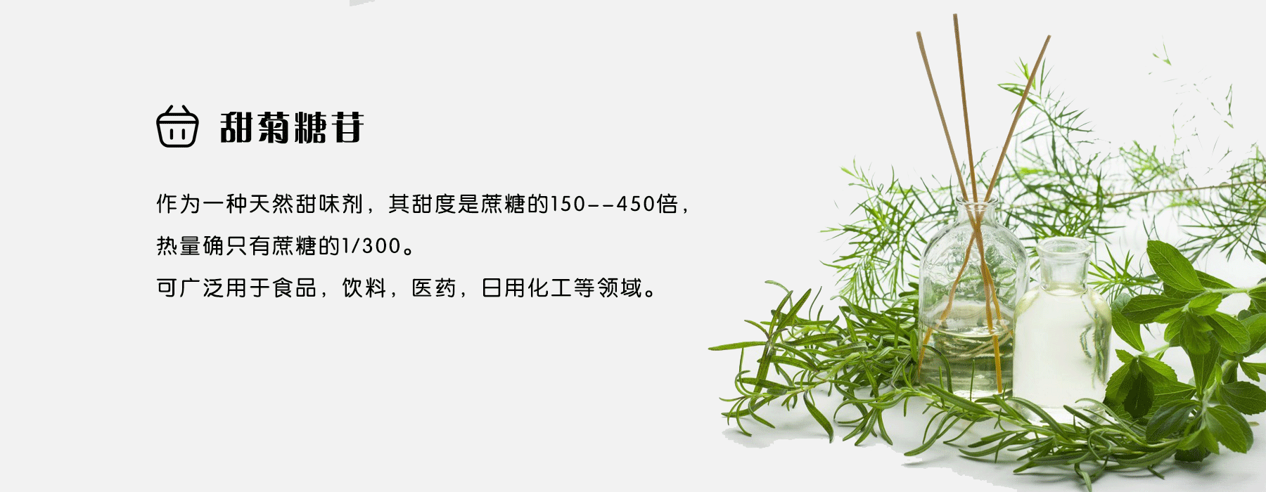 纯天然提取,甜度倍数最高可以达到蔗糖的450倍,口感很好,广泛应用于中、高端饮料、果冻、饼干、糖浆、酱料等产品。
